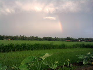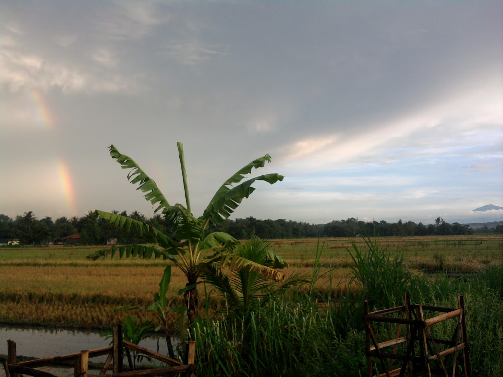 Biasanya kan pelangi itu muncul disiang atau sore hari yang cerah setelah turun hujan. Nah untuk kali ini terjadi dipagi hari dalam kondisi masih mendung. Namun memang semenjak tadi malam bantul diguyur hujan hingga tadi pagi. Bahkan sempat diiringi oleh angin kencang dan mati lampu didini hari menjelang subuh.